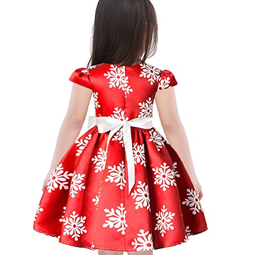 Tueenhuge Toddler Baby Girls Christmas Dress Snowflake Print Wedding Formal Birthday Party Dresses with Bowknot Belt Red