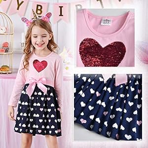 VASCHY Unicorn Rainbow Dress for Girls, Cute Girls Casual Autumn Spring Long-Sleeve Outfit,Toddler/Little/Big Kid Girls Clothing Size 4-5T