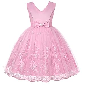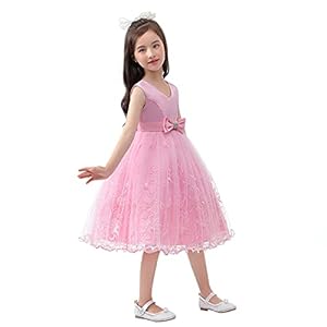 Girls Dress Party Dress for Girls Knee Length Cute Priness Dress Christmas Holiday Dress(8-9 Years,Pink Priness Dress)