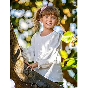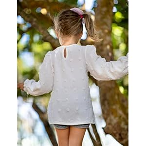 Yekaty Girls Blouse Long Sleeve O-Neck Swiss Dots Tunic Tops Loose Blouse White
