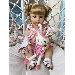ROSHUAN Reborn Baby Dolls Girl 22 inch Lifelike Realistic Toddler Reborn Doll Silicone Vinyl Full Body Waterproof with Blond Long Hair Pink Dress for Birthday Gifts