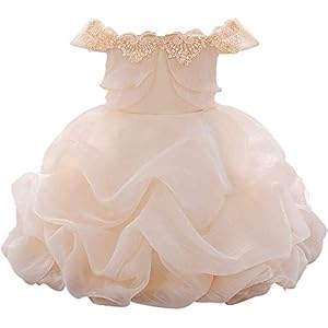 Meiqiduo Baby Girls Dress Christening Baptism Party Formal Dresses (3M/0-6Months, Ivory)