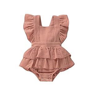Bowanadacles Newborn Baby Girl Romper Jumpsuit Cotton Linen Sleeveless Ruffled Bodysuit Infant Summer Clothes Outfits (70(0-3M), Tile Red)
