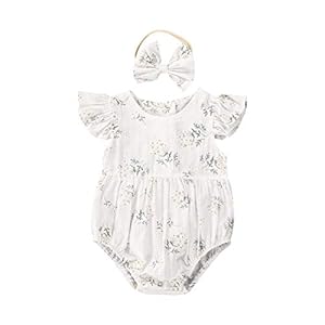Newborn Baby Girl Romper Floral Ruffle Sleeveless Jumpsuit Cotton Bodysuit with Headband Summer Clothes Outfit (A-White, 0-6m)